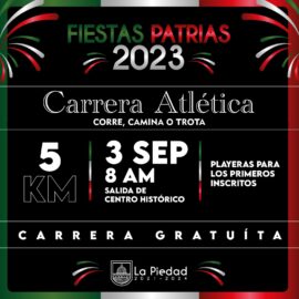 La Piedad Michoacàn a 30 de Agosto de 2023. El Gobierno Municipal a través de la Dirección de Deportes y Recreación invitan a la población para participar en la carrera atlética, corre, camina o trota que será el próximo domingo 3 de septiembre. De acuerdo a lo informado...