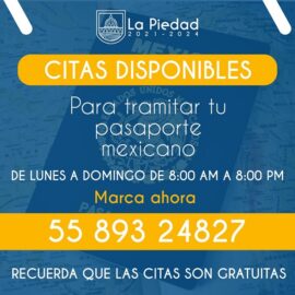 La Piedad Michoacàn a 26 de Julio de 2023. La Oficina Municipal de Enlace de la Secretaría de Relaciones Exteriores en el municipio de La Piedad, informa a quienes necesitan realizar el trámite de Pasaporte Mexicano, que pueden agendar su cita por llamada telefónica para ser atendidos. María...