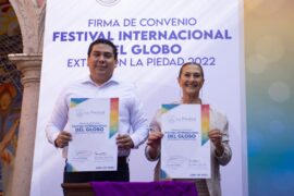 La Piedad, Michoacán a 12 de Abril del 2022.- Alcalde de La Piedad, Samuel Hidalgo Gallardo, y la directora general del Festival Internacional del Globo (FIG) Escandra Salim Alle, estuvieron en las instalaciones de la Escuela de Artes, para realizar la firma de convenio y pueda realizarse una...