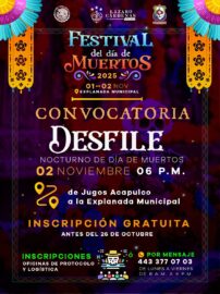 Lázaro Cárdenas, Michoacán, a 14 de Octubre de 2025.- El Gobierno Municipal de Lázaro Cárdenas, a través de la Coordinación de Protocolo y Logística, invita a la ciudadanía a participar en el Desfile Nocturno del Día de Muertos, que se llevará a cabo el 2 de noviembre a...