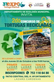 Cd. Lázaro Cárdenas, Michoacàn a 8 de octubre de 2025.- Como parte de las actividades de la 31ª Expo Tortuga Marina, el Gobierno Municipal a través del Departamento de Ecología Municipal, invita a estudiantes de nivel medio superior y universidades a participar en el 2do Concurso de Tortugas...