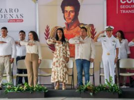 Cd. Lázaro Cárdenas, Michoacàn a 14 de Febrero del 2025.- En la conmemoración del CXCIV aniversario luctuoso de Vicente Guerrero; autoridades navales, militares y municipales se reunieron en la Escuela Primaria “Vicente Guerrero”, para rendir homenaje a este Héroe de la Independencia, quien un 14 de febrero 1831...