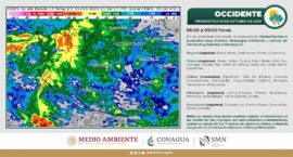 Cd. Lazaro Cárdenas, Michoacan a 10 de Octubre del 2023.- El Gobierno Municipal a través de la Unidad de Protección Civil Municipal, informa que este martes las lluvias fuertes continuarán en Lázaro Cárdenas, así como descargas eléctricas y rachas fuertes de vientos, esto derivado al Huracán categoría 1...
