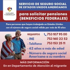 Cd. Lázaro Cárdenas, Michoacán a 13 de Octubre del 2023. El Departamento de Atención al Migrante invita a iniciar su trámite de Pensión Americana y la Certificación de apostille de sus actas de nacimiento, los cuales se realizan de manera gratuita y son apoyados por la Embajada de...