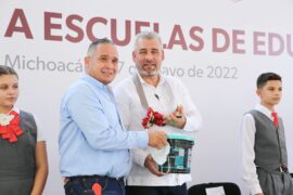 Huetamo, Michoacán a 28 de Mayo del 2022.- El gobernador Alfredo Ramírez Bedolla entregó material de apoyo a 30 escuelas públicas de la región Huetamo, beneficiando a más de 6 mil niñas y niños de preescolar, primaria y secundaria. Como parte de la gira de trabajo por municipios...