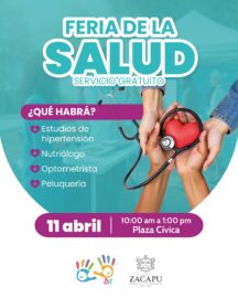 Zacapu, Michoacán a 08 de Abril de 2025. Con el firme compromiso de mejorar la calidad de vida de la ciudadanía, el Sistema DIF Zacapu invita a toda la población a participar en la Feria de la Salud, un evento gratuito que tiene como objetivo promover el bienestar...