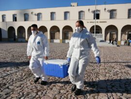 Morelia, Michoacán a 14 de Febrero de 2021.- El Gobierno de México recibió el primer embarque de vacunas envasadas de la farmacéutica AstraZeneca con 870 mil dosis contra el virus SARS-CoV-2, causante de COVID-19, provenientes de Mumbai, India, para iniciar este lunes la vacunación a adultos mayores en...