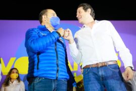 Morelia, Michoacán a 19 de abril de 2021.- En el primer minuto de este día, en un acto festivo en la Plaza de La Paz abarrotada de simpatizantes, el presidente nacional del PAN, Marko Cortés Mendoza, encabezó el arranque de campaña del candidato a la alcaldía de Morelia...