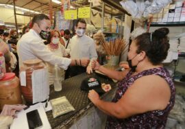 Apatzingán, Michoacán, a 8 de abril de 2021.- Consumir local e incentivar el comercio será un sello en Michoacán, lo que permitirá detonar la economía, afirmó el candidato del Equipo por Michoacán, Carlos Herrera Tello. El abanderado del PRI, PAN y PRD realizó un recorrido por el mercado...
