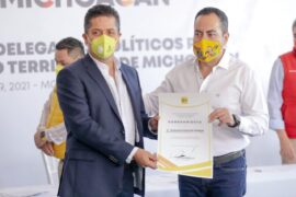 Morelia, Michoacán a 09 de Marzo de 2021.-Con el objetivo de tender puentes, potencializar la estrategia y trazar las actividades del Equipo por Michoacán, el Coordinador de Estrategia Territorial, Carlos Herrera Tello, entregó los nombramientos de Delegados Políticos para el Fortalecimiento Territorial a José Manuel Hinojosa Pérez, del...