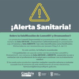 Morelia, Michoacán a 17 de Marzo del 2022.- La Comisión Federal para la Protección contra Riesgos Sanitarios (Cofepris), a través de la Secretaría de Salud de Michoacán (SSM) y la Comisión Estatal contra Riesgos Sanitarios (Coepris), alerta a la población sobre la falsificación de los productos Lomotil (loperamida)...
