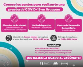 Morelia, Michoacán, a 12 de agosto de 2021.- Derivado de la dispersión acelerada de virus y sus variantes, aunado a que las medidas sanitarias de prevención se han relajado, en Uruapan cinco de cada 10 pruebas COVID-19 resultan positivas. Por lo anterior, la Secretaría de Salud de Michoacán...