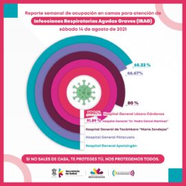 Morelia, Michoacán, a 14 de agosto de 2021.- De las unidades médicas de la Secretaría de Salud de Michoacán (SSM) reconvertidas para la atención de Infecciones Respiratorias Agudas Graves (IRAG), cinco son las que registran mayor demanda. El hospital General “Dra. Elena Avilés”, de Lázaro Cárdenas, ya no...