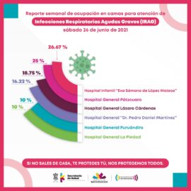 Morelia, Michoacán, a 26 de junio de 2021.- Los hospitales con camas reconvertidas para la atención de Infecciones Respiratorias Agudas Graves (IRAG), de la Secretaría de Salud de Michoacán (SSM), van a la baja. Después de que los primeros meses del año las unidades médicas de la SSM...