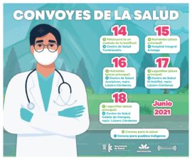 Morelia, Michoacán, a 13 de junio de 2021.- En aras de brindar servicios de salud gratuitos, la Secretaría de Salud de Michoacán (SSM), informa a la población que desplegará del 14 al 18 de junio Convoyes de Salud y para Pueblos Indígenas. El Convoy de la Salud se...