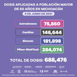 Morelia, Michoacán, a 9 de junio de 2021.- De manera transversal, se han aplicado 995 mil 553 dosis de vacuna contra COVID-19 a la población mayor de 40 años en la entidad, con el objetivo de preservar la salud y la vida. Apenas este lunes, Michoacán se catalogó...