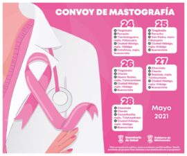 Morelia, Michoacán, a 23 de mayo de 2021.- La Secretaría de Salud de Michoacán (SSM), informa los lugares en los que se encontrarán los Mastógrafos móviles, del 24 al 28 de mayo, como parte de la estrategia para la detección oportuna del cáncer de mama. Lo anterior, con...