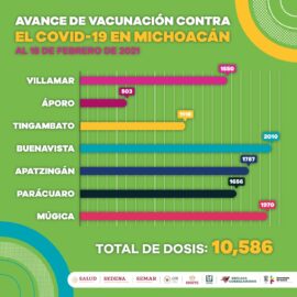 Morelia, Michoacán, a 17 de Febrero de 2021. – La Secretaría de Salud de Michoacán (SSM), informa que seis mil 605 adultos mayores de 60 años han recibido la primera dosis de la vacuna contra COVID-19. Los beneficiados con la aplicación de la vacuna son personas que residen...