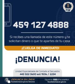 Morelia, Michoacán, a 27 de agosto de 2021.- Trabajos de inteligencia llevados a cabo por la Fiscalía General del Estado de Michoacán (FGE), permitieron localizar a salvo a un hombre y a su hijo de 3 años de edad, víctimas de extorsión virtual en Tacámbaro. Ayer por la...