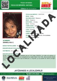 Zitácuaro, Michoacán, a 9 de agosto de 2024.- La Fiscalía General del Estado de Michoacán (FGE) informa que Karen C., y su hija de 4 años fueron localizadas, luego de ser reportadas como desaparecidas en el municipio de Jungapeo. De acuerdo a la denuncia presentada ante la Fiscalía...