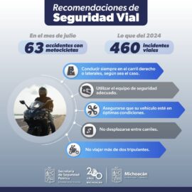 Morelia, Michoacán, 10 de agosto de 2024.- La Secretaría de Seguridad Pública (SSP), a través de la Coordinación de Seguridad Vial, hace un llamado a la ciudadanía para conducir con precaución y evitar accidentes viales, con el propósito de garantizar su bienestar y el de terceras personas. En...
