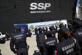 Morelia, Michoacán, 22 de Marzo de 2024.- La Secretaría de Seguridad Pública (SSP) despidió de manera simbólica a sus tres agentes de la Guardia Civil, adscritos a la región Pátzcuaro, que fallecieron en cumplimiento del deber el pasado domingo. En ceremonia luctuosa, los mandos de la institución encabezaron...