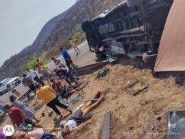 Arteaga, Michoacán, 16 de mayo de 2022. – La accidente se registró la tarde de este lunes en la autopista siglo 21 al impactarse una camioneta turística tipo urvan contra un camión torton dejando como saldo preliminar tres personas fallecidas y 4 prensadas además un indeterminado número de...
