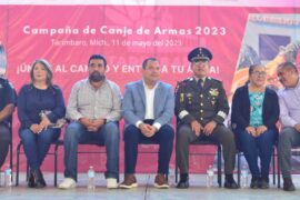Tarímbaro, Michoacán a 11 de Mayo de 2023.- Este jueves se llevó a cabo el arranque de la campaña de canje de armas en el municipio de Tarímbaro, encabezada por el presidente Bladimir González y la Secretaría de Defensa Nacional, representada por el Comandante del 12vo Batallón de...