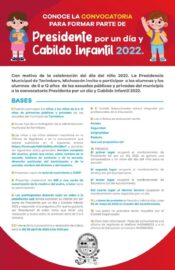 Tarímbaro, Michoacán, a 12 de abril de 2022.- El Gobierno de Tarímbaro convocan a los niños y niñas tarimbarenses de 6 a 12 años a participar en la convocatoria “Presidente y/o integrantes del Cabildo por un día”, donde podrán fungir como alcade, síndico y regidores para crear una...