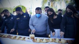 Tarímbaro, Michoacán, a 04 de enero de 2022.- Con la finalidad de apoyar el comercio local de las y los panaderos tarimbarenses, el Gobierno Municipal de Tarímbaro organizó la creación de una rosca monumental de 120 metros de largo. La mega rosca abarcó toda la plaza principal de...