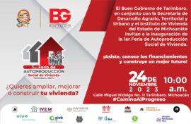 Tarímbaro, Michoacán a 21 de Noviembre de 2023.- En un esfuerzo conjunto entre dependencias federales, estatales y municipales, así como instituciones de crédito y casas de materiales locales, el municipio de Tarímbaro se complace en invitar a la ciudadanía a la «Primera Feria de Autoproducción de Vivienda Social»....