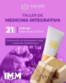 Zacapu, Michoacán, 20 de marzo de 2025.- Con el objetivo de fomentar el autoempleo y promover una vida sustentable para las zacapenses, el Instituto Municipal de la Mujer invita a las mujeres a participar en el Taller de Medicina Integrativa, donde las asistentes podrán aprender a elaborar bloqueador...