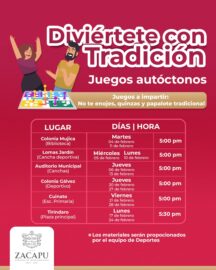 Zacapu, Michoacán, 30 de Enero de 2025- Para fomentar la convivencia familiar y comunitaria, el Gobierno de Zacapu, a través de la Dirección del Deporte invita a participar en los Juegos autóctonos “Diviértete con tradición”, una actividad diseñada para rescatar y difundir prácticas recreativas tradicionales. Las familias podrán...