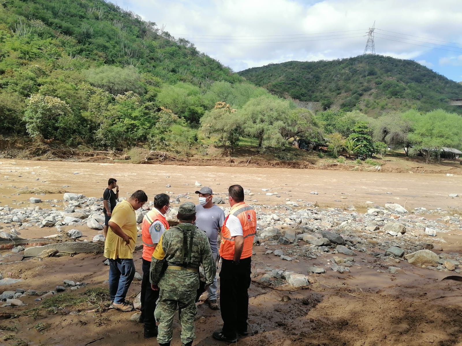 Hasta este punto de la geografía michoacana se ha traslado también personal de Protección Civil estatal para apoyar las labores coordinadas por las autoridades federales, toda vez que la crecida del río que atraviesa esta comunidad arrasó con puentes y al desbordarse, afectó las vialidades al tiempo que el agua ingresó a varios domicilios.