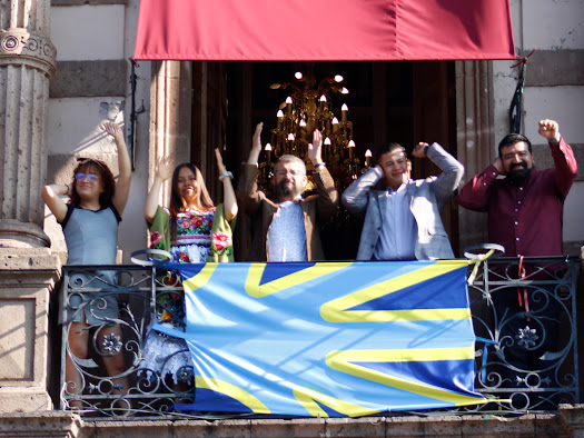 Morelia, Michoacàn a 23 de septiembre de 2023.- La organización civil Fuerza Sorda, distintas organizaciones, el Secretario de Gobierno en Michoacán, Carlos Torres Piña y el diputado local, Víctor Zurita Ortiz, colocaron en el Congreso del Estado de Michoacán y Palacio de Gobierno, la bandera de la comunidad sorda, como parte de las actividades realizadas en el marco del Día Internacional de las Lenguas de Señas que se celebra este 23 de septiembre.
