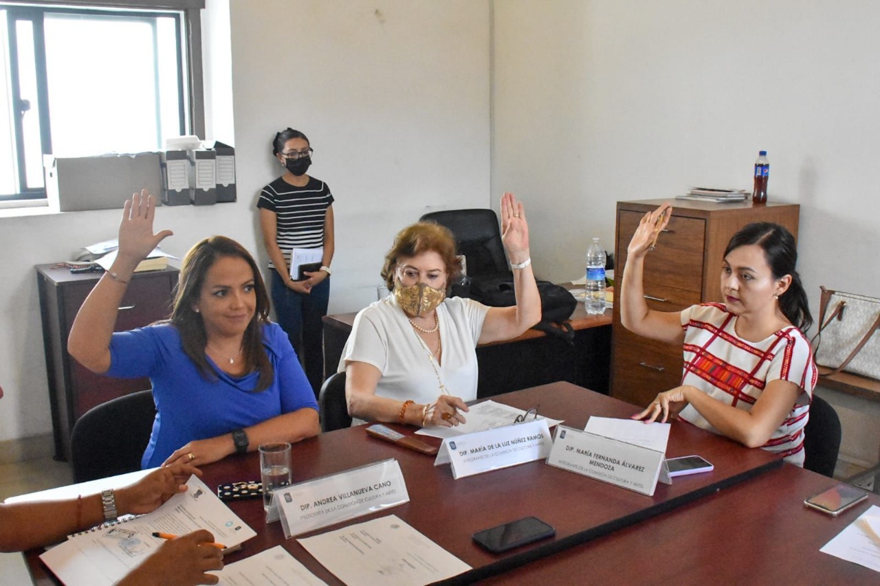 Morelia, Michoacán, 25 de mayo de 2022.- La Presidenta de la Comisión de Cultura y Artes del Congreso del Estado, Andrea Villanueva Cano, así como sus integrantes, María de la Luz Núñez Ramos y María Fernanda Álvarez Mendoza, votaron a favor de la elaboración de dictámenes para declarar la lengua tarasco purépecha como patrimonio cultural intangible en Michoacán, así como para inscribir con letras de oro el nombre “María del Refugio García Martínez” en el Muro de Honor del Palacio Legislativo.
