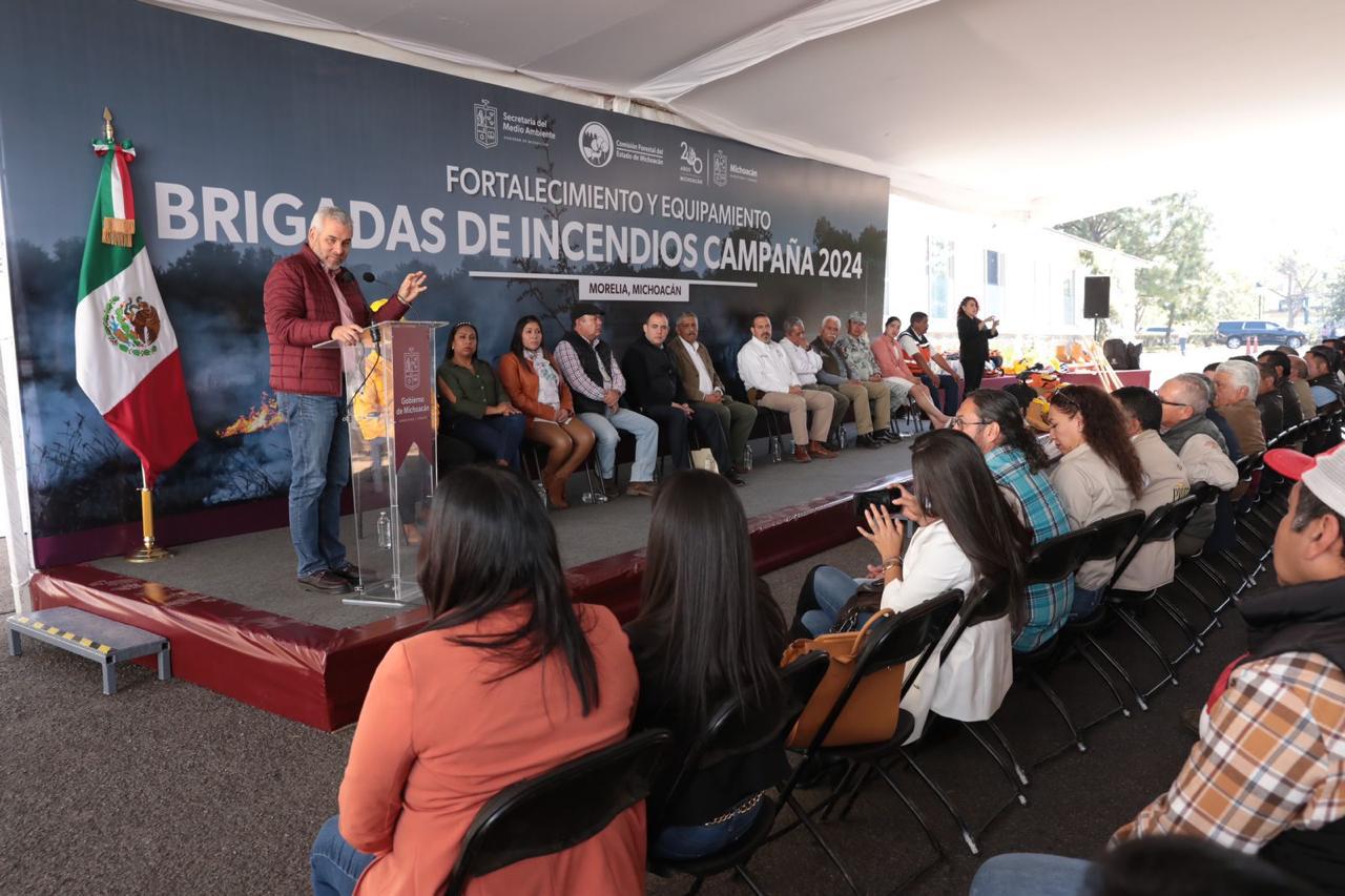 En tanto, el coordinador general de conservación y restauración de la Conafor, Eduardo Vargas Pérez afirmó que la protección de los bosques es una de las principales políticas públicas del Gobierno federal; reconoció el trabajo que ha desarrollado el gobernador Alfredo Ramírez Bedolla en el cuidado del medio ambiente, con es la entrega de equipamiento y la implementación de tecnología para atender los incendios.