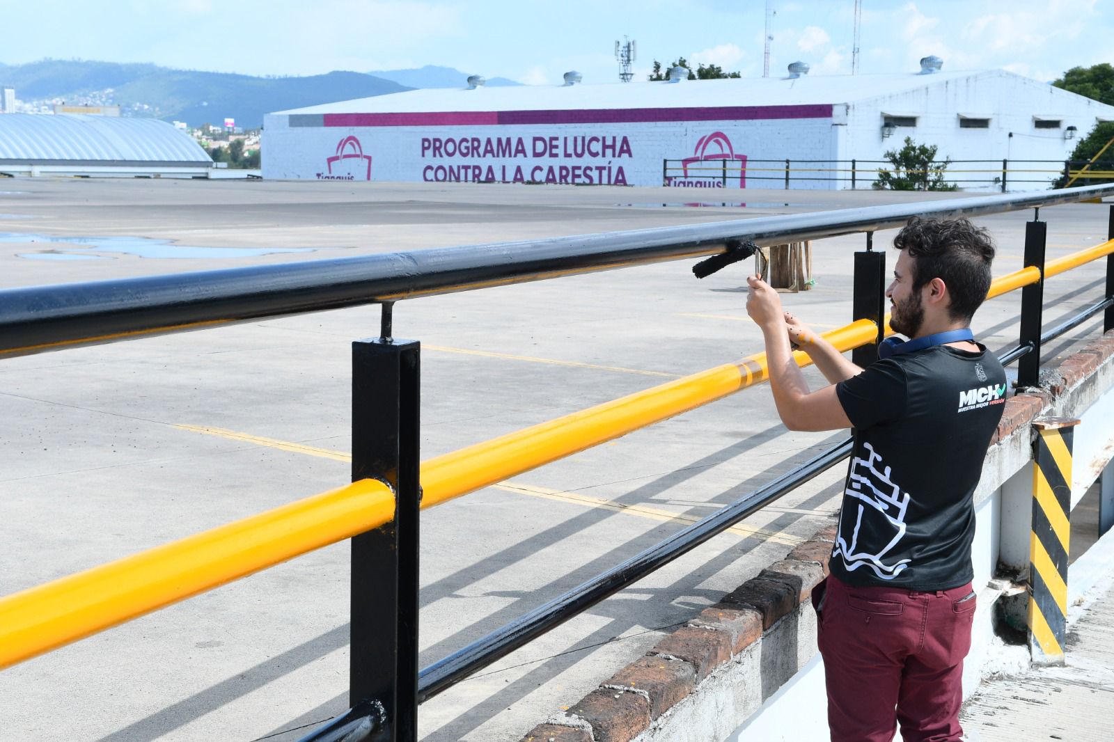 Se invirtieron 735 mil para la entrega de mandiles y pintarrones en los cinco centros de abasto; 30 mil pesos en el cambio de imagen del de Santa María, el cambio de reja de bodega y recubrimiento de la planta de concreto en el paso peatonal; y también el cambio de imagen en Tenencia Morelos y Santiago Undameo.