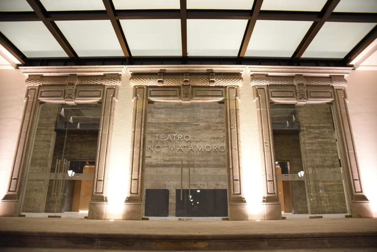 Morelia, Michoacán, a 26 de febrero de 2021.- La obra del Teatro Mariano Matamoros ya fue concluida por la administración estatal del gobernador Silvano Aureoles Conejo, por lo que la noche de este jueves procedió a retirar los tapiales que cubrían la fachada del recinto.