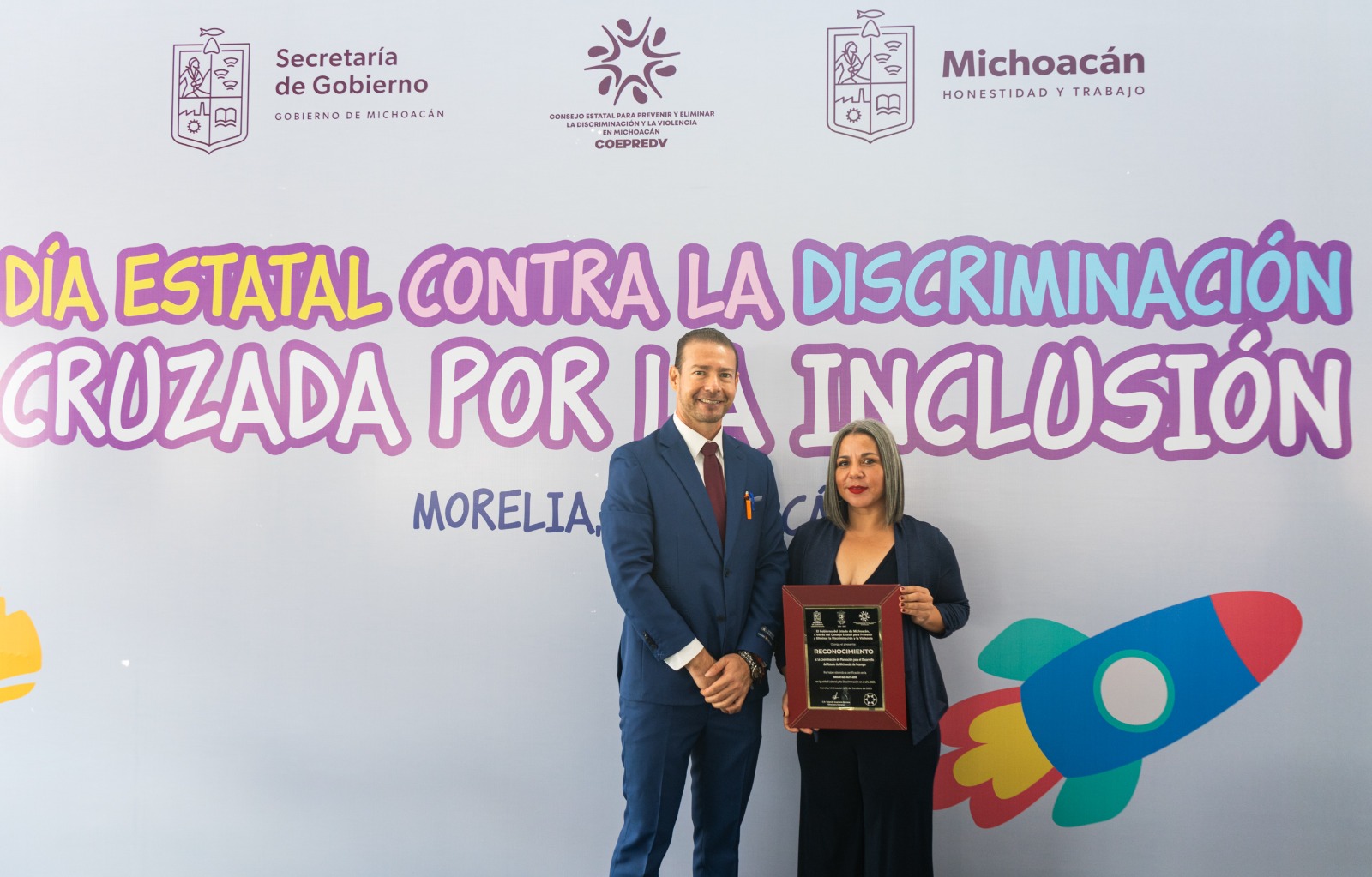 El reconocimiento es otorgado por el Consejo Estatal para Prevenir y Eliminar la Discriminación y la Violencia (Coepredv), quien es anfitrión de la Cruzada por la Inclusión, evento que se llevó a cabo el jueves 19 de octubre en la plaza Valladolid del Centro Histórico de Morelia.
