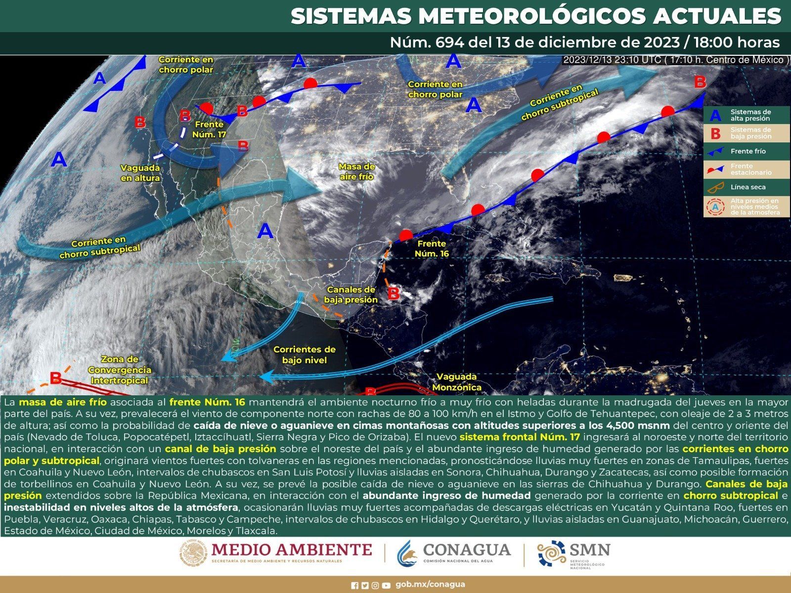 Debido a una masa de aire frío se genera un gradual descenso de temperatura desde el anochecer y heladas en las regiones del Oriente, Meseta Purépecha y Bajío de la entidad.