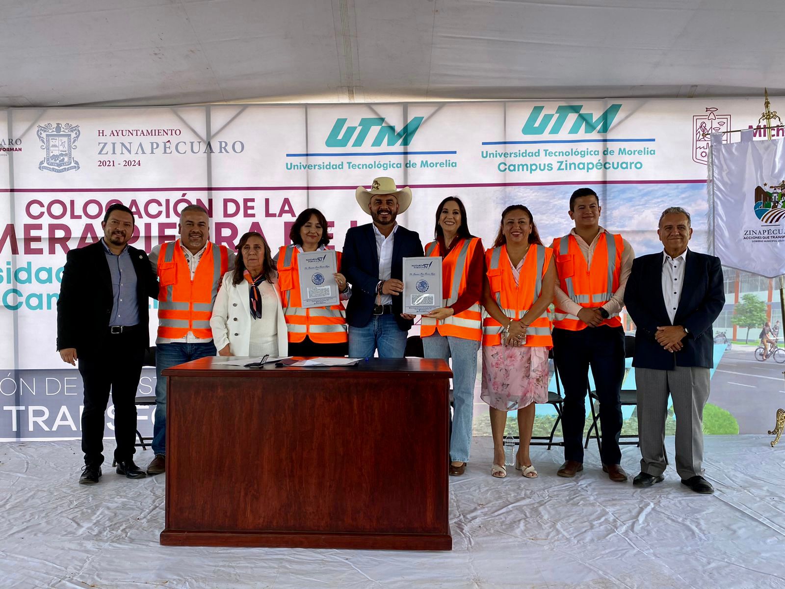 Al asistir a la colocación de la primera piedra de las instalaciones que alojarán a la Universidad Tecnológica de Morelia (UTM), campus Zinapécuaro, resaltó la gran oportunidad que representa para que los jóvenes del municipio y la región, logren insertase en los programas de Gastronomía y Biotecnología que, de inicio, ofrecerá este nuevo campus.