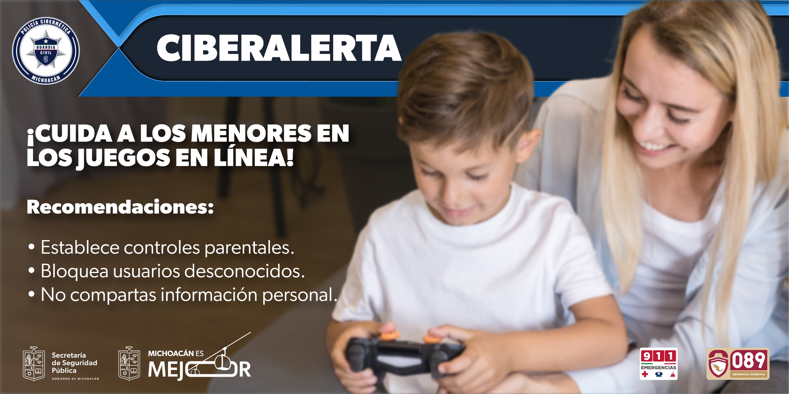 Morelia, Michoacán, 9 de Enero de 2025.- Ante el creciente uso de juegos en línea, niñas, niños y adolescentes se encuentran vulnerables a ser víctimas de delitos graves como extorsiones, acoso e incluso secuestro virtual; cuídalos con estas recomendaciones que te ofrece la Secretaría de Seguridad Pública (SSP).