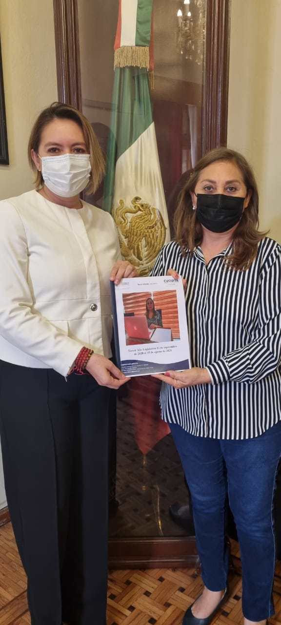 Morelia, Michoacán, 01 de septiembre de 2021. En tiempo y forma, la diputada Ma. del Refugio Cabrera Hermosillo, presentó ante la presidenta de la Mesa Directiva del Congreso del Estado, Yarabí Ávila González, su informe de actividades correspondientes al Tercer Año Legislativo del 15 de septiembre del 2020 al 15 de agosto del 2021.