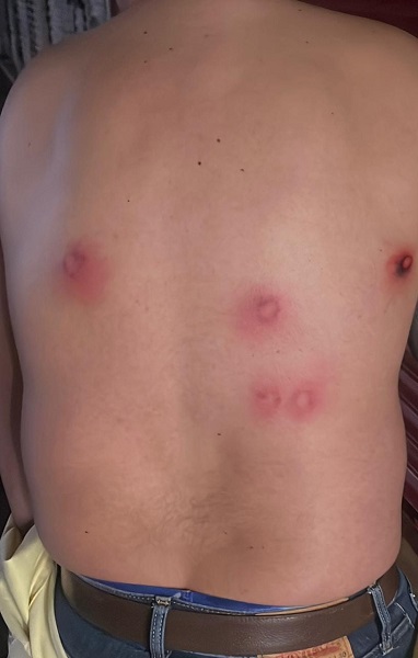 Morelia, Michoacán a 05 de Mayo del 2023.- El Coordinador del Grupo Parlamentario del Partido del Trabajo, Reyes Galindo Pedraza, fue agredido de manera física con balas de goma, que dispararon elementos de la Guardia Civil de Michoacán, sin razón alguna.