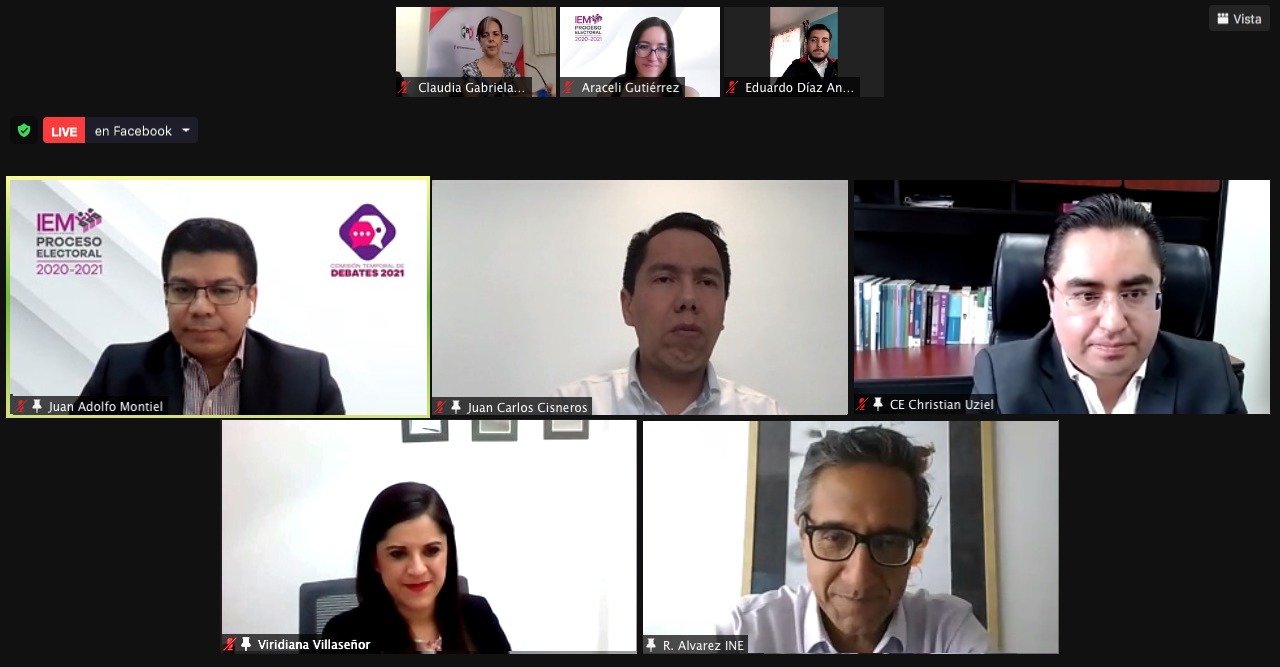 Morelia, Michoacán a 29 de Marzo de 2021, Para avanzar en la óptima organización de los debates de Candidatas y Candidatos a la Gubernatura, Diputaciones y Ayuntamientos, así como los dos que por ley le corresponden organizar al Instituto Electoral de Michoacán (IEM), se desarrolló de manera virtual la Mesa de Diálogo “Debates en Pandemia” con la participación del Instituto Nacional Electoral (INE) y los Institutos Electorales de Hidalgo y Coahuila.