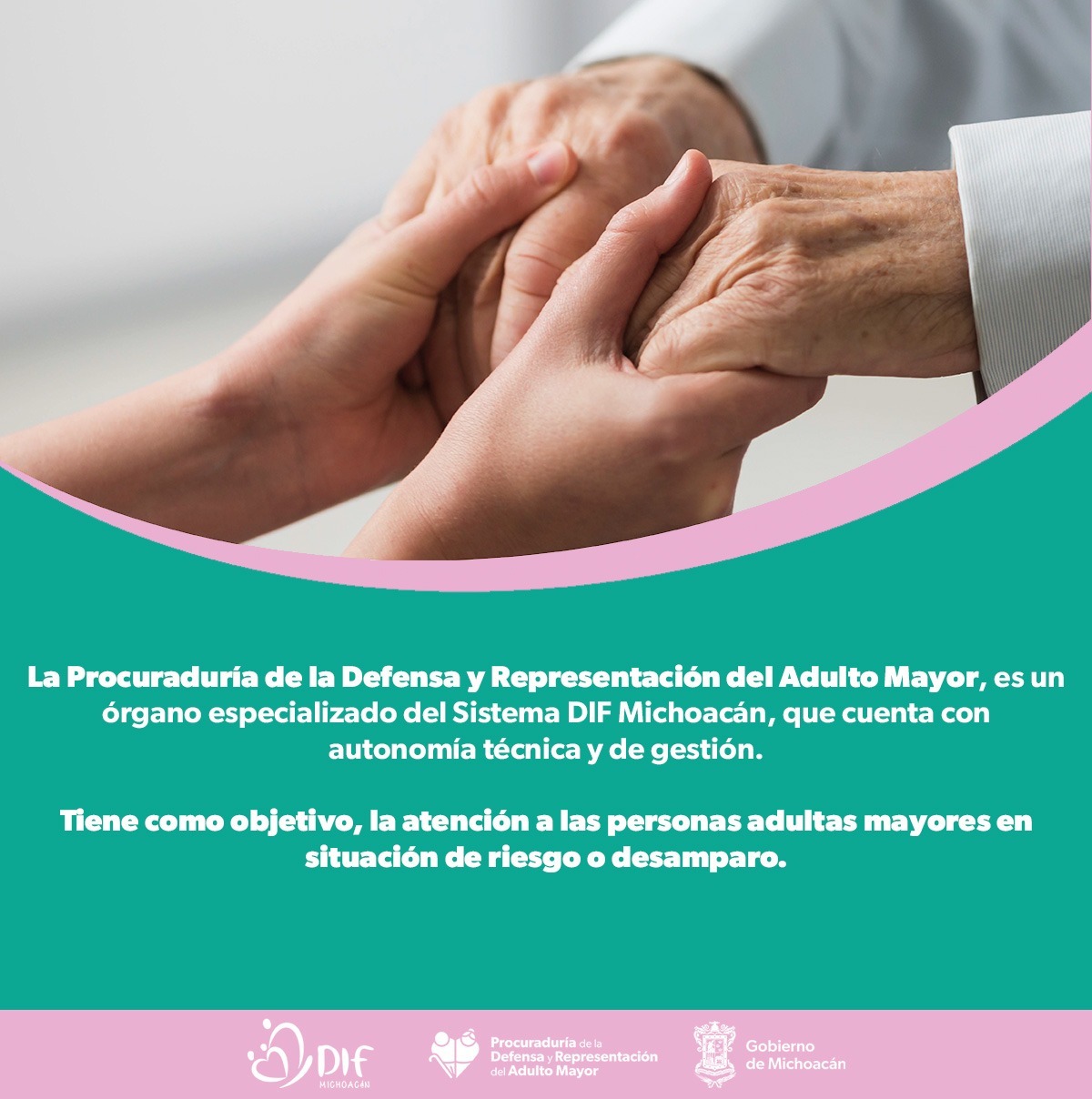 Morelia, Michoacán 14 de Abril de 2024.- El Sistema DIF Michoacán, a través de la Procuraduría de la Defensa y Representación del Adulto Mayor, brinda servicios de atención integral a las personas adultas mayores en situación de riesgo o desamparo, a partir de los 60 años.