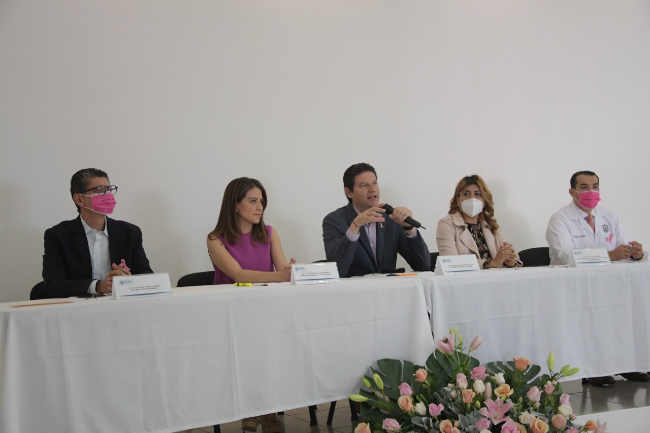 Acompañada del presidente de Morelia, Alfonso Martínez Alcázar, la directora de la Unidad de Especialidades Médicas de Cáncer de Mama (UNEME dedicam), Crystal Estrada Jasso, el director de Salud Municipal, José Misael López Díaz y el director del DIF Morelia, Alejandro Amante Urbina, la presidenta honoraria dio a conocer las acciones que se realizarán a partir del primero de octubre.