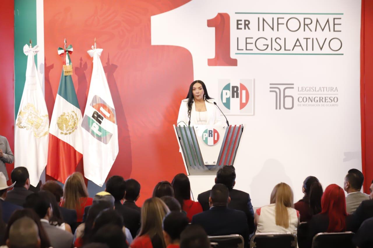 La diputada Adriana Campos Huirache, coordinadora del Grupo Parlamentario del PRI, informó que, durante este Primer Año de la 76 Legislatura, presentó 33 iniciativas y cuatro puntos de acuerdo, iniciativas que dijo, son producto de escuchar a la gente en sus recorridos por los mercados, las escuelas y las calles.