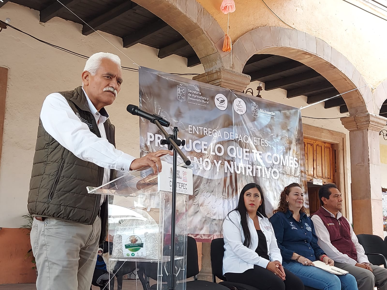 Contepec Michoacán, a 03 de Agosto de 2023.- Con el anuncio de que este año se duplicará el número de familias beneficiadas con la vertiente huertos de traspatio, del programa insignia AgroSano, la Secretaría de Agricultura y Desarrollo Rural (Sader) inició la entrega 2023 de paquetes para la producción de alimentos en Epitacio Huerta, Aporo, Contepec, Irimbo y Senguio.